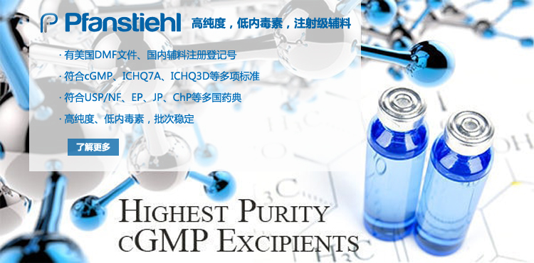“熱烈祝賀Pfanstiehl的注射級甘氨酸Glycine(G-140)喜獲CDE登記號F20250000403, 這是Pfanstiehl產品獲得的第18個CDE登記號!”甘氨酸在醫藥輔料制劑中應用廣泛,, 可作為緩沖劑,增溶劑,穩定劑等,具有諸多優勢。Pfanstiehl秉承一貫高品質理念,為滿足全球生物制藥行業對于高品質甘氨酸的需求,隆重推出的注射級甘氨酸Glycine (G-140), 具有超高純度,超低內毒素,超低金屬殘留的特點,單獨檢測29種金屬離子,并且新增DNA,RNA,DNA酶,RNA酶和脂肪酶,亞硝酸鹽等多項質量指標的檢測,符合多國藥典規定(USP, EP, BP, JPE, ChP),可用于生物治療性藥物和疫苗的生產。產品信息:· 產品名稱:Glycine, High Purity, Low Endotoxin, Low Metals, USP, EP, BP, JPE, ChP (G-140)· 中文名稱:甘氨酸· 分子式:C2H5NO2· 分子量:75.07 g / mol· CAS號:56-40-6· 產品貨號:G-140產品特點: · 超高純度,超低內毒素,超低微生物含量,超低金屬雜質殘留· 質量指標新增DNA,RNA,DNA酶,RNA酶,脂肪酶和亞硝酸鹽檢測· 符合多國藥典:USP, EP, BP, JPE, ChP· 符合ICH Q3D標準· 符合GMP標準· 已獲DMF和CDE登記號 產品應用:· 緩沖劑· 穩定劑· 增溶劑如果您對Pfanstiehl注射級別Glycine G-140感興趣,歡迎聯系Pfanstiehl 中國區代理商北京西美杰科技有限公司獲得如下詳細的產品概況說明文件和測試樣品。Pfanstiehl Inc.最新產品系列如下,歡迎聯系北京西美杰科技有限公司獲取100g裝免費樣品。北京西美杰科技有限公司為Pfanstiehl中國代理,為客戶提供完善的技術支持與售后服務。歡迎撥打西美杰客服電話400-050-4006或者登陸網站www_xstextiles_com.ajlovefest.com了解更多信息。 更多>